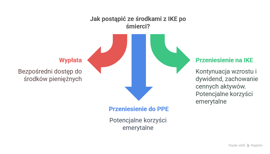 Pamiętaj bowiem, że generalnie osoba uprawniona z dyspozycji ma 3 możliwości postąpienia ze środkami z IKE, tj.: