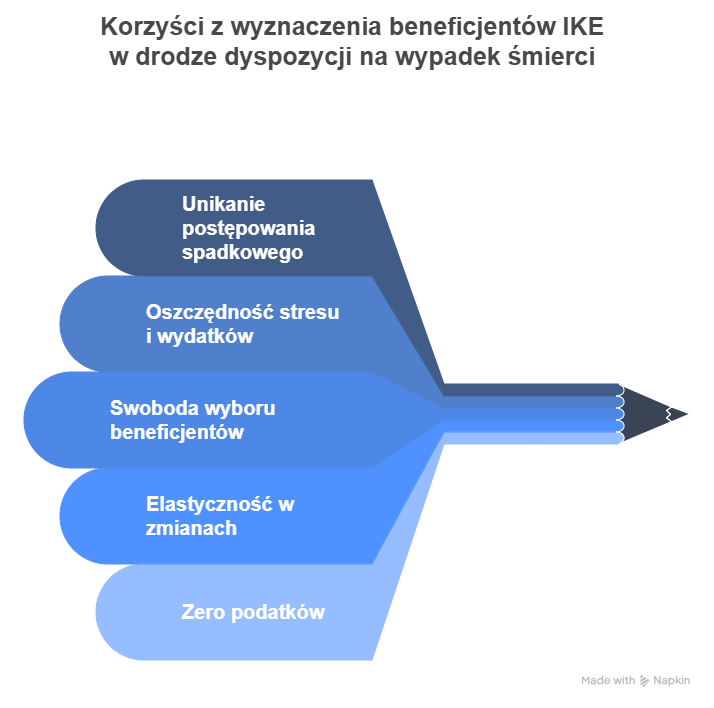 Istnieje wiele powodów, dlaczego warto złożyć dyspozycje na wypadek śmierci w instytucji prowadzącej Twoje IKE (np. biurze maklerskim). Oto najważniejsze z nich: