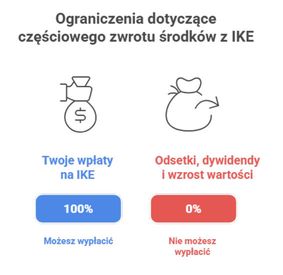 Oznacza to, że przepisy chronią „rdzeń kapitałowy” konstrukcji — nie możesz częściowo wycofać środków przekraczających sumę własnych wpłat.