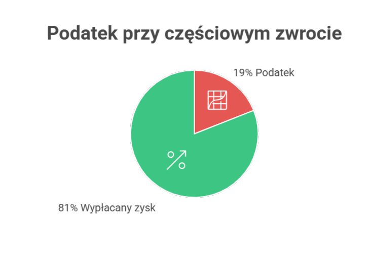 Oczywiście, od wypłacanej części odpowiadającej wypracowanemu zyskowi zapłacisz 19% podatku od zysków kapitałowych. Ale za to pozostała reszta środków nadal będzie pracować w osłonie podatkowej.